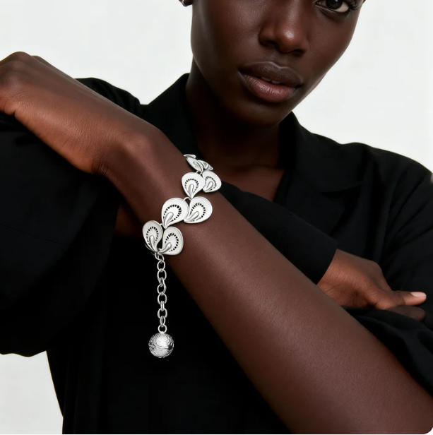 • This Miao Silver Necklace is handcrafted by skilled Miao artisans using traditional filigree techniques passed down through generations. Each delicate peacock feather link is twisted and soldered by hand, showcasing the intricate artistry of Miao silverwork.